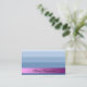 This delicate and classy card is based on gradient stripes colored blue, and a horizontal pink banner carrying your name. The rear side is clean with black text on white background, but where your name is colored rose red, with a black shadow effect.