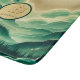 This design features a beautiful gradient of emerald and kelly green with shimmering glitter accents. Inspired by Chinese painting, it includes soft watercolor effects, a bright sunrise, and a glowing sun. A customizable monogram in the center makes it personal and unique. Elegant and versatile for any product or occasion.