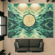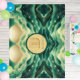 This design features a beautiful gradient of emerald and kelly green with shimmering glitter accents. Inspired by Chinese painting, it includes soft watercolor effects, a bright sunrise, and a glowing sun. A customizable monogram in the center makes it personal and unique. Elegant and versatile for any product or occasion.