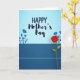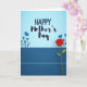 This greeting card features a horizontally split layout that feels calm and affectionate, like a gentle hug ❤️. Across the upper two-thirds, the words “HAPPY Mother’s Day” sit centered on a soft sky-blue gradient that brightens toward the middle. “HAPPY” appears in large capital letters, while “Mother’s Day” follows beneath in a flowing, decorative style, both set in white for strong contrast. A thin white line runs straight across the card, separating the airy blue top from a deep indigo band at the bottom. From the right side of that indigo section, a single red flower rises upward, its layered petals looking velvety and slightly curled as if leaning in with quiet affection. On the left, darker blue floral silhouettes cluster low and close together, adding a companionable, supportive feel 🌼. The red blossom stands tall on a slender green stem that arcs up past the dividing line against the blue background.