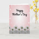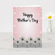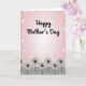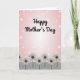 This card features a soft gradient background that shifts from rosy pink at the top into a glowing white center, like gentle light gathering in the middle. Near the upper area, a Mother’s Day greeting sits prominently in a dark, flowing letter style, standing out clearly against the pale backdrop. Scattered around it are small, hazy light dots that resemble distant twinkles, adding a cozy, affectionate glow ❤️. Along the bottom edge, a neat border of stylized flowers creates a grounded frame, suggesting a caring presence gathered close. Each bloom has crisp white petals radiating from a moss-green center, with thin, dark stems rising upward in a calm, graceful rhythm. Beneath the flowers, a textured silver base looks like fine lace or glittering fabric, giving the scene a dressy, celebratory touch 🌼. The lower border shows white-petaled blossoms with green centers resting on a shimmering silvery band, with slender dark stems reaching up into the light.