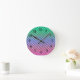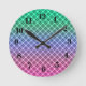 Gradient grid checkered plaid tartan pattern pink round clock