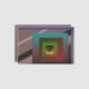 A captivating abstract digital art piece featuring layered geometric squares with a gradient of vibrant colors, ranging from teal, green, red, and yellow, transitioning to dark tones. At the center, a teardrop-shaped element in pink and yellow adds a dynamic focal point, set against a textured backdrop with subtle diagonal streaks of light and shadow.
