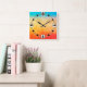 Gradient ombre coral blush beige blue soft blurred square wall clock