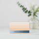 This delicate and classy card is based on gradient stripes colored peach, and a horizontal blue banner carrying your name. The rear side is clean with black text on white background, but where your name is colored rose red, with a black shadow effect.