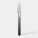 Elegant one color silvery grey gradient design. Name is printed slightly angled on bottom part.