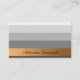 This delicate and classy card is based on gradient stripes colored silvery grey, and a horizontal golden banner carrying your name. The rear side is clean with black text on white background, but where your name is colored rose red, with a black shadow effect.