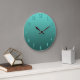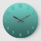 A colorful yet quite simple wall clock design, all based on one color: Teal. The digits are regular numbers with tiny black outline. The digits and background are opposite gradient, making the digits stand out in a cool way.