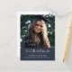 This graduation announcement features a large photo and a clever message of gratitude. The announcement reads "Filled with GRADitude" and includes a thank you and "signature" in a handwriting font. The navy background can be modified to match your school colors. This graduation announcement works especially well for those completing advanced degrees to share their appreciation for the support they've received over the course of their studies. This graduation announcement post card is easy to mail.
