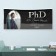 A banner that celebrates a PhD graduate with words and a picture. Add your photo and text, add it to your cart, then use it to celebrate the graduate!