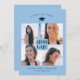 Stylish and unique graduation announcement card to send out to family and friends. There is a blue box in the middle with the word "graduate" inside with 4 photos around it.