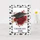 Graduation card is shown with a lovely red rose and cap print.
