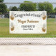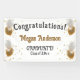 A Hanging Graduation Congratulations Banner designed with gold colored text on a white background with gold and white balloons and sparkles. To personalize, simply replace the sample name with your details.