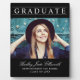 A striking black graduation plaque featuring Graduate in sophisticated spaced serif type above a senior portrait, with the graduate's name in flowing script and the school name and class year in white below. The dramatic black background makes the photo and typography pop. Customize with a favorite portrait and details for a bold tabletop keepsake or graduation gift.