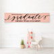 Celebrate the graduate with this stylish graduation celebration banner. The banner features a blush pink background with "Graduate" displayed in stylish white script calligraphy. Customize with your graduate's name, school, and graduation year. Background color, font color, and fonts can be changed to suit your preference.