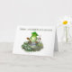 Congratulation card for the graduate with frog holding diploma, sitting near pond.