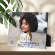 An elegant graduation plaque featuring a full senior portrait with Graduate in flowing gold script, the graduate's name, school, and class year in warm gold type. The luxe metallic script adds a sophisticated touch to any photo. Customize with a favorite portrait and details for a personalized tabletop keepsake or premium graduation gift.