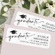 Return address labels featuring a graduation cap and the text "graduate" in a handwritten style font. To the right are template fields for your name and address.