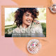 This trendy and stylish graduation announcement features two photos of the grad, with retro disco style typography for an up-do-date throwback look. There is room on the back of the card to add all the details about the class, school, and future plans of the graduate.