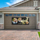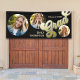 This design features a graduation black banner outdoor party photo sign, featuring a modern, black and gold, picture, photo collage, perfect for high school or college, with retro style typography