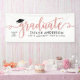 Elegant and glamorous custom graduation banner sign celebrates your grad in style! Design features a grad cap, "Graduate" in modern faux rose gold foil script, and modern custom text that can be personalized with the graduate's name, class year, and school. White background color can be modified.