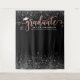 Elegant graduation party backdrop sign celebrates your grad in style! Design features a grad cap, "Graduate" in modern rose gold script, and modern custom text that can be personalized with the graduate's name, class year, and school. Includes a border of sparkling silver and white confetti. Black background color can be modified.