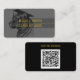 Create personalized graduate name cards. The front of the card features a tiger grad design with your desired name and class year. The back of the card has a QR code you can use for your website. Black and gold color hues. Use the template to personalize.