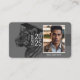 Create personalized graduate name cards. The front of the card features a tiger grad design with your desired name, class year, and photo. The back of the card has the name of the school, awards and achievements, and the diploma, or degree. Black and white color hues. Use the template to personalize.