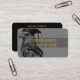 Create personalized graduate name cards. The front of the card features an eagle grad design with your desired name and class year. The back of the card has a QR code you can use for your website. Black and gold color hues. Use the template to personalize.