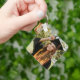The key chain is made of metal and really sturdy. The flower design is really cheerful. The logo and colors are clear and crisp!