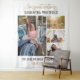 Photo collage gold script graduation party photo booth backdrop for the new grad. Features 4 photos of the graduate, and the word "Congratulations" is set.