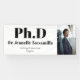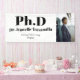 A banner that celebrates a PhD graduate with words and a picture. This minimalist design has a white and black color scheme. The photo is a template that is meant to be swapped out for your own. Add your photo and text, add it to your cart, then use it to celebrate the graduate!