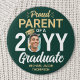 Show your joy for the graduating senior with a stylish custom photo "Proud Parent" round graduation button. The picture and text on this template are simple to personalize. The colors and font styles can be changed with the Zazzle Design Editor tool. Customize this button for any family member or friend, such as mom, dad, grandma, nana, grandpa, sibling, parent, aunt, uncle, sister, brother, cousin etc. Featuring elegant modern typography and stylish calligraphy script, the green and gold design includes the graduate's photo, name, and class year. Please note that the gold is printed color, not metallic foil. This keepsake accessory adds a unique touch to a commencement ceremony or graduation party outfit. Congratulations to the graduate!