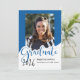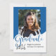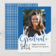 This whimsical photo graduation announcement features the word “graduate” in large royal blue letters with a place for your favorite photo. The back is a royal blue and white polka dot design with a graduation cap.