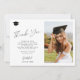 Minimalist modern elegant script personalized graduation thank you card template with 2 graduate photos, your custom text message, and signature.