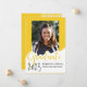 This whimsical photo graduation announcement features the word “graduate” in large yellow letters with a place for your favorite photo. The back is a black and white polka dot design.