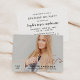 Stylish and elegant graduation announcement card and party invitation features a senior photo with "graduate" real rose gold foil script overlay. Personalize the modern custom text with your grad's name, school, and class year. This two-sided card design includes graduation party invitation wording on the back.