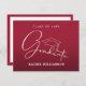 Crimson red flat, two-sided thank you note cards feature your name, class year, a graduation hat over the word Graduation in white on the front and plenty of room on the back to write a handwritten message or compose a message to be printed. MATCHING items and more colors in our collection.