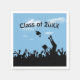 Graduates silhouette crowd with tossed cap in blue sky with clouds for graduation party.
