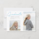 Graduate Stylish Blue Smooth Script 2-Photo Announcement
