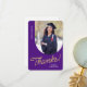 This flat graduate thank you card features a vertical photo with an arched edge. Personalize this purple and gold card with your own message or use the one shown.