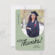 A graduate thank you card featuring a vertical photo with an arched edge. Personalize this sage green and black card with your own message of gratitude or use the one shown.