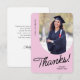 A graduate thank you card featuring a vertical photo with an arched edge. Personalize this light pink and black card with your own message of gratitude or use the one shown.