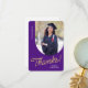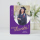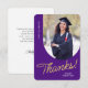 This flat graduate thank you card features a vertical photo with an arched edge. Personalize this purple and gold card with your own message or use the one shown.