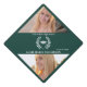 This design features a graduate typography school colors simple dark green graduation cap topper, with a contemporary class of 2024 template, a cute high school or college, a classic modern minimal trendy, a stylish trendy laurel leaves laureate, stylish calligraphy script, graduation grad graduation hat, a senior photo 2 two picture, custom customized mortarboard, a personalized graduation cap top