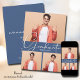Add your favorite 3 photos on the front of these graduation announcements that feature class of and GRADUATE in chic lettering on a blue background with your details on the back. MORE DESIGNS in our store.