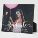 A stylish graduation plaque featuring a full senior portrait with Graduate in flowing white script, the graduate's name, school, and class year in clean white type. The white overlay creates a modern, versatile look that works with any photo. Customize with a favorite portrait and details for a personalized tabletop display or graduation gift.