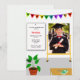 Graduation invitation for graduated kid features a graduated kid on the board in the classroom.