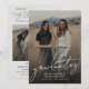 Celebrate the Ultimate Achievement: The Graduates! Our design highlights one stunning portrait on the front of both grads, accompanied by elegant white script lettering that reads "graduates." Flip it over and customize the modern party template with three more snapshots of the accomplished grads. Let's make this celebration even more memorable!