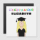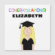 Illustration of female graduate with colourful text reading "Congratulations!"